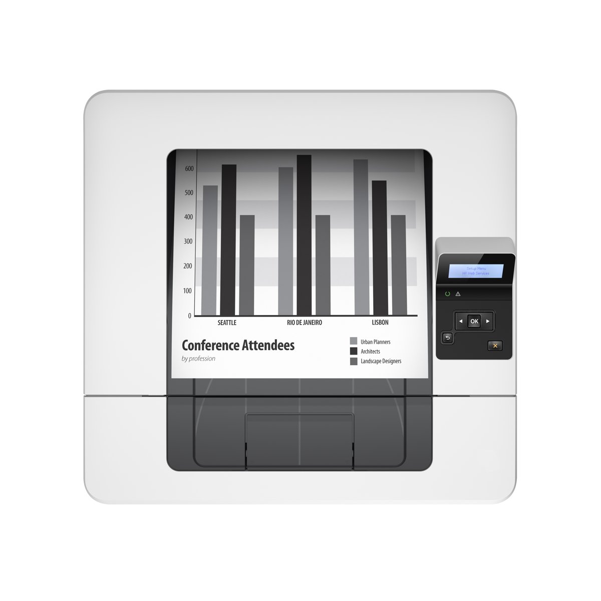 Imprimante HP 402dn avec 38 ppm, fonction recto verso automatique et connectivité réseau, idéale pour les bureaux à haut volume.